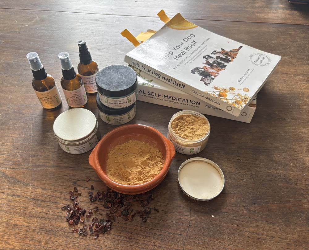 I often begin my sessions by offering a selection of dried plant nutrients for ingestion—such as spirulina, barley grass, rosehip shells, and other powdered botanicals—tailored to the animal’s specific presenting issues or health concerns. These nutritional plant extracts serve as a valuable starting point, helping to quickly identify areas of need. Responses to dried nutrients are often more obvious than with essential oils: animals will either eagerly lick or consume a particular powder (with water where necessary), or move away, providing an immediate and easy-to-read indication of interest or aversion.
